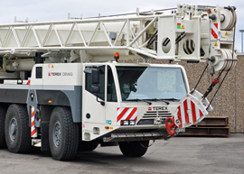 The Terex Explorer 5600 is a 180 ton capacity all-terrain crane. It features 223 ft of main boom and 88.7 ft of luffing jib.
